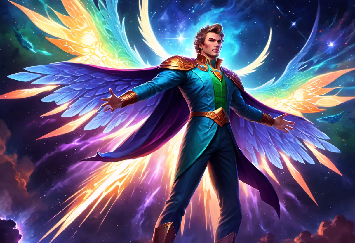 Prompt: ((((extremely detailed quantum Luminescent psychedelic complex)))) dark blue red green (((huge giant massive ultimate powerful supernova girl with flaming wings full of lightning energy in stellar space of interdimensional universe))) ((sparkling stars covered night)) (iced ocean, cold night)