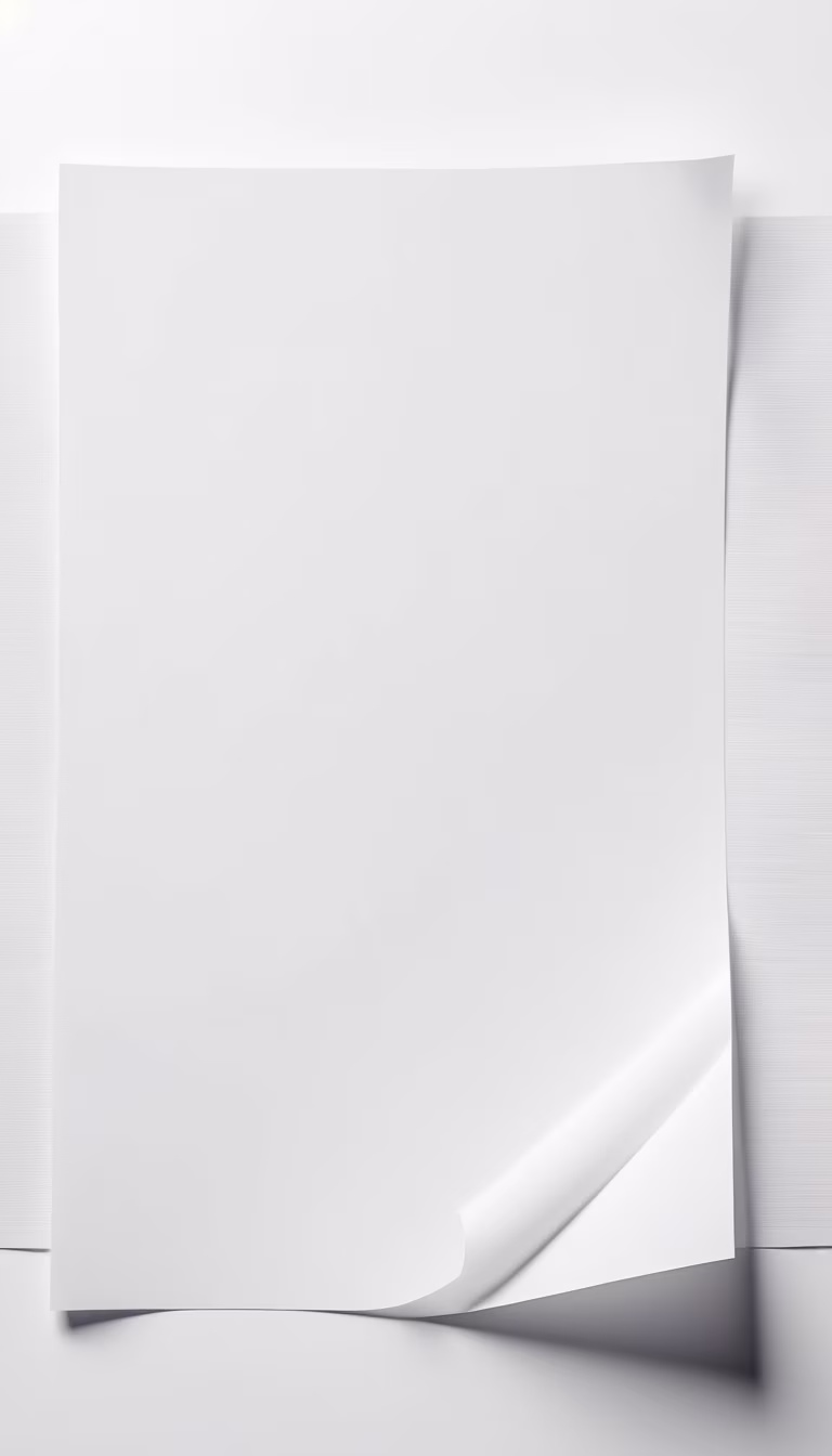 Prompt: A static image of a white paper ready to be turned, transparent background, high definition, ratio 9:16