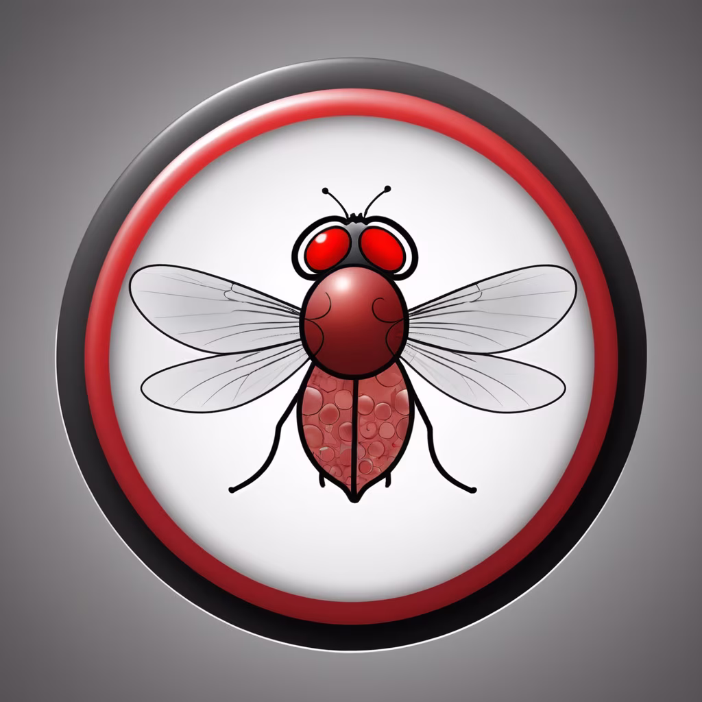 Prompt: drosophila melanogaster, badge, one red eye and another white, DNA double helix, \\\"Genetic and Molecular Biology Experiment\\\"