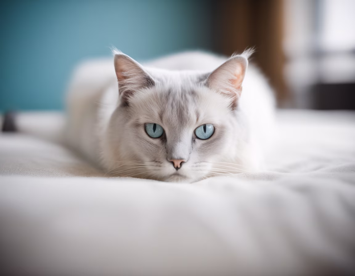 Prompt: a cat with eyes on the sides of its head like a horse or pret animal