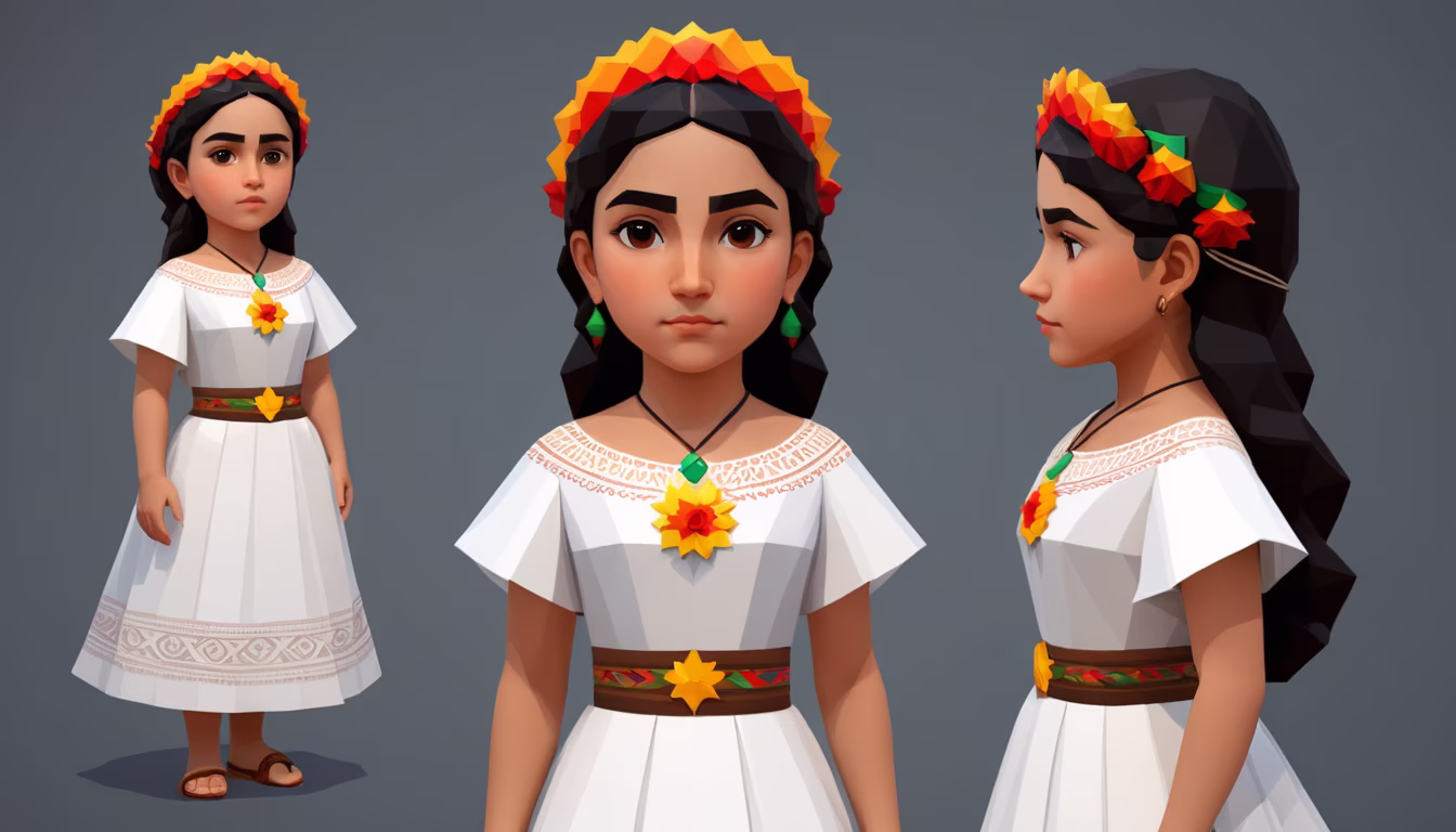 Prompt: Mexican girl in the style of William-Adolphe Bouguereau, with Mexican characteristic engravings