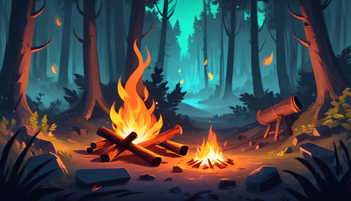 Prompt: a fiery forest where the trees are made of charcoal and the leaves are embers themselves.