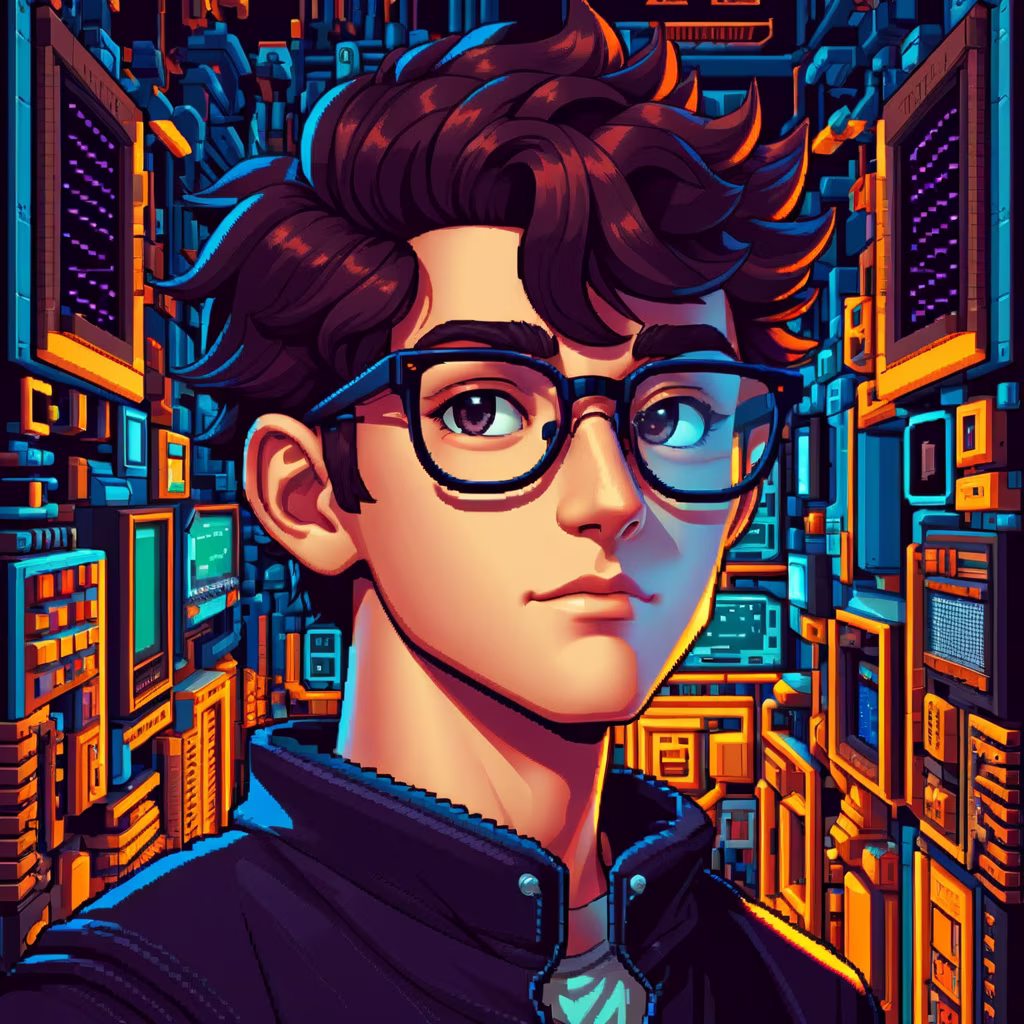 Prompt: \"Pixel art style: Illustrate a boy with dog ears sneakily playing a TV game in a dimly lit room late at night. Capture the joy on his face illuminated by the glow of the TV screen in this playful and clandestine moment.\"
