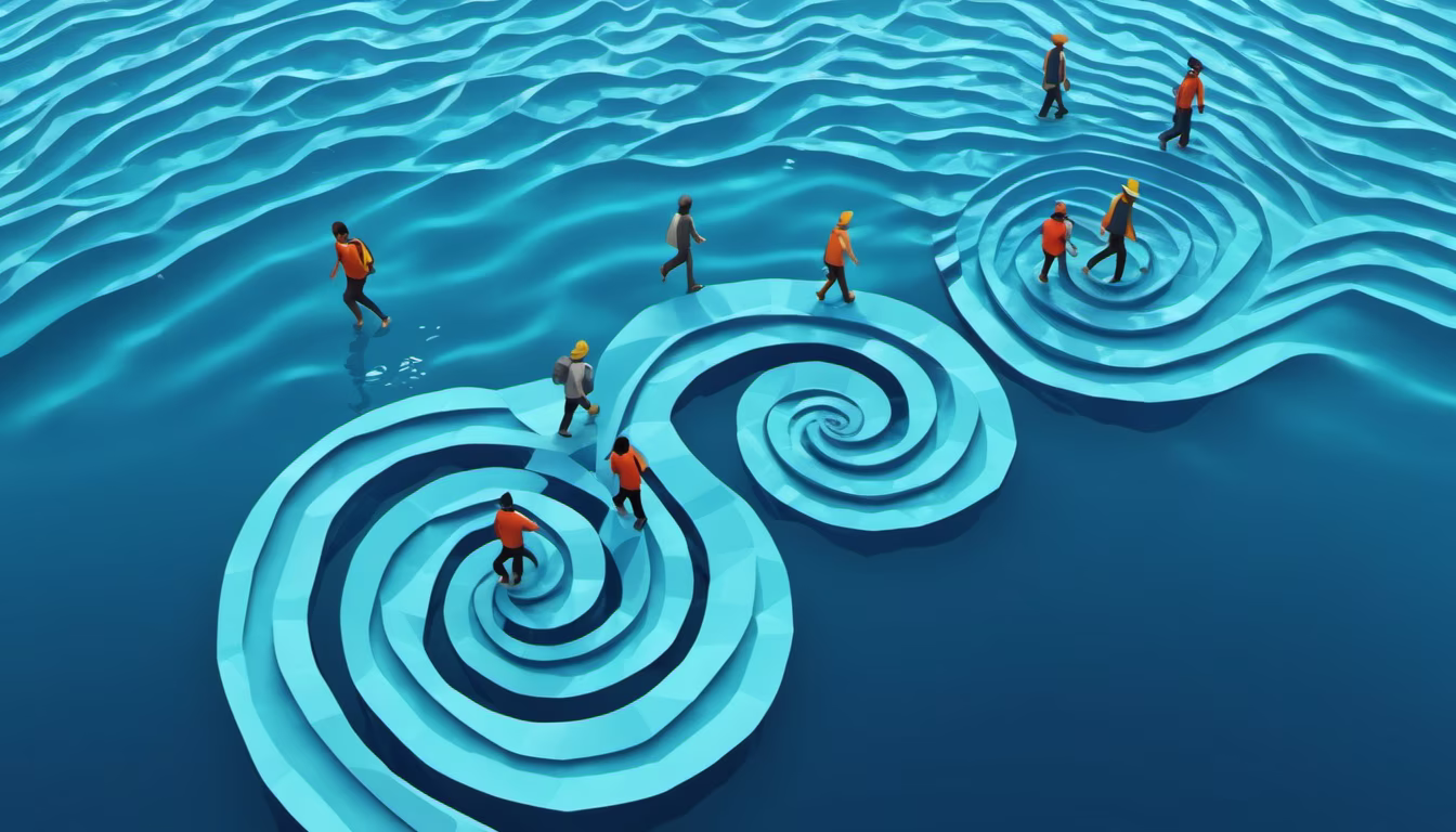 Prompt: crazy spirals fractals multiple intense clear ocean waves withoeople walking on the bottom of the ocean without any assistance inbreathing underwater hd 3d 32k amazing