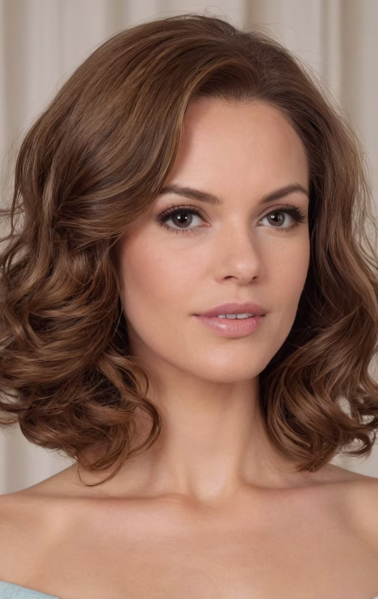 Prompt: Year:1967. Formal portrait. High detail, Canon EOS DSLR photograph. UHD, 8K resolution, sharp focus, full color, formal, in-studio, close up facial shot, showcasing the luscious, luxuriant, very voluminous hair of an age 40 wife 1967. Her thick, lush, richly textured, very straight brunette hair is expertly styled, precisely arranged, in a very lofty, highly voluminous, full-bodied, puffy, fluffy, billowy, 3D, long bob with smooth rounded ends. Solid color background. Accurate 1967 styling.