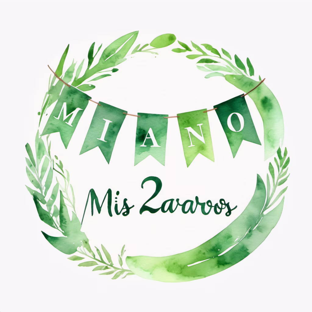 Prompt: round tree branches and leaves and ballons and confetti in watercolor style for a birthday banner
